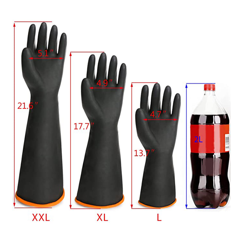 Thick Enough For Complete Protection: These Gloves Are Very Thick To Give Your Staffs Complete Protection Till Their Forearms Even While Handling Acid And Alkali Based Solutions.